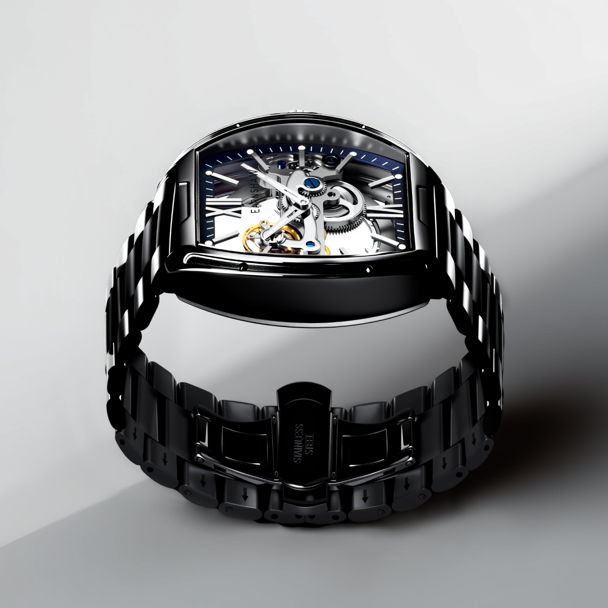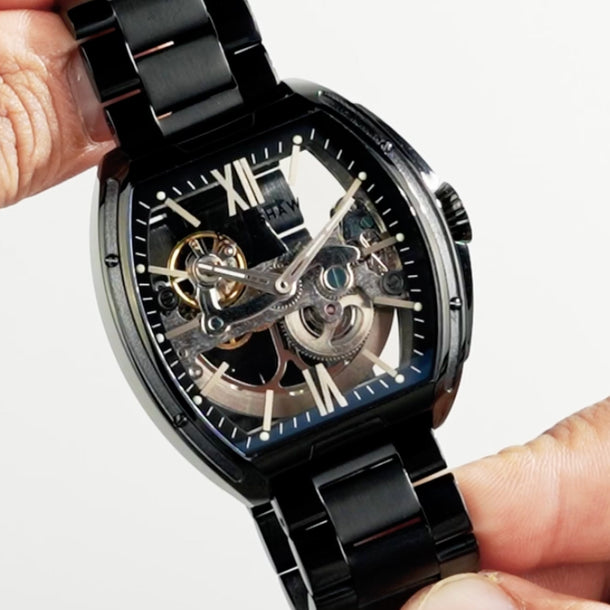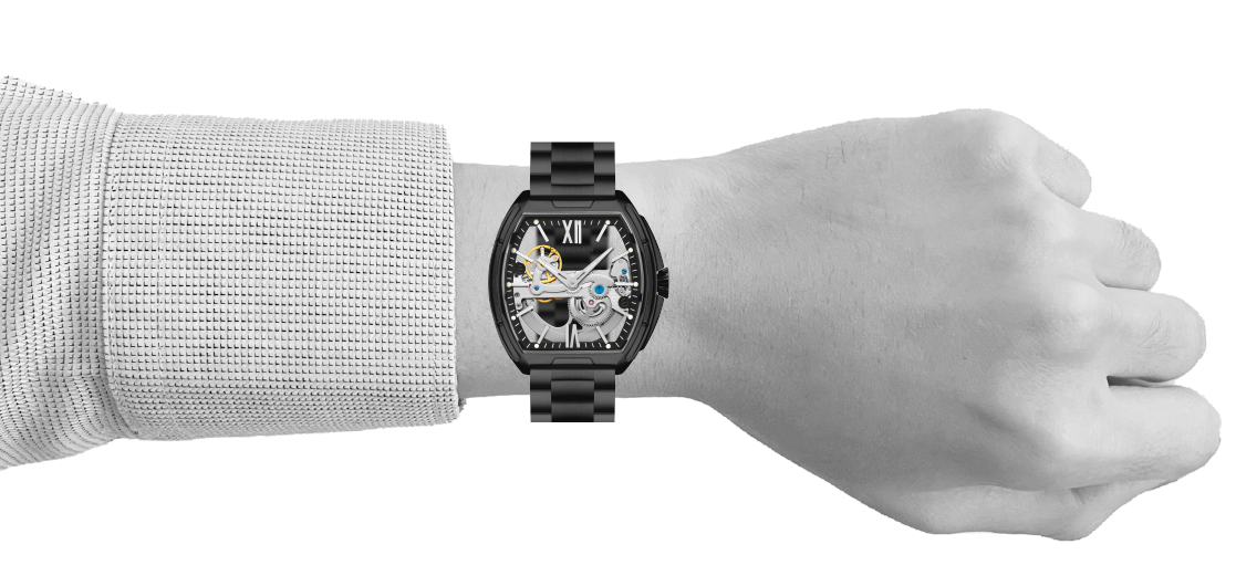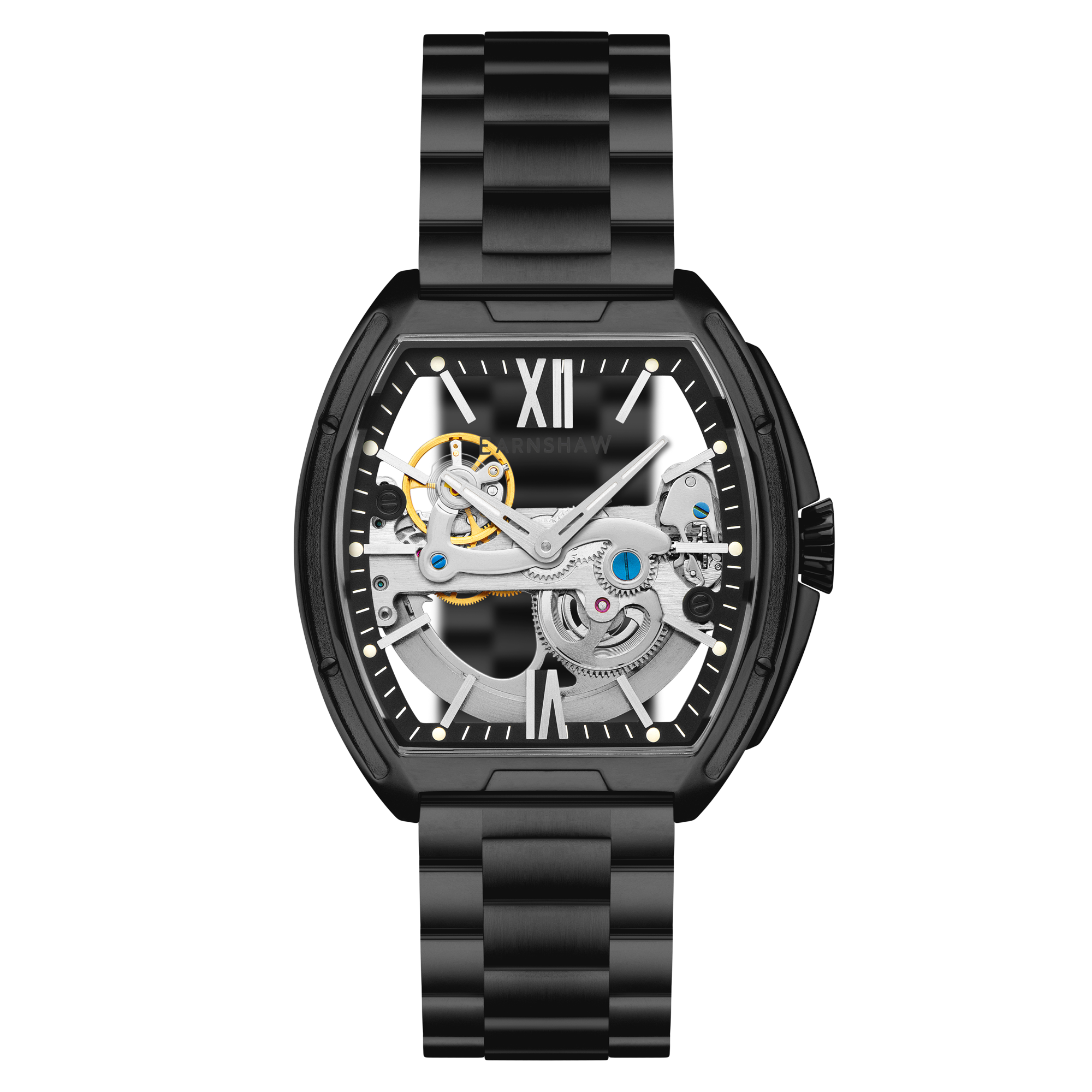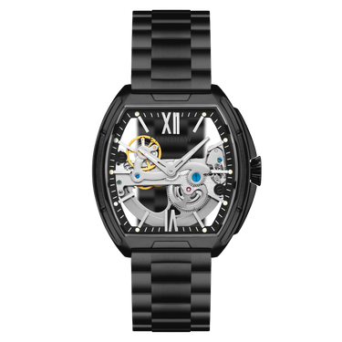Sleek and striking, the Knightsbridge Automatic embraces openwork design with a fully transparent dial and exposed movement. Housed in a 45mm barrel-shaped case, this spectacular timepiece features Roman numeral accents and a double-curved lens. Pairing traditional elegance with contemporary flair, it redefines classic watchmaking.