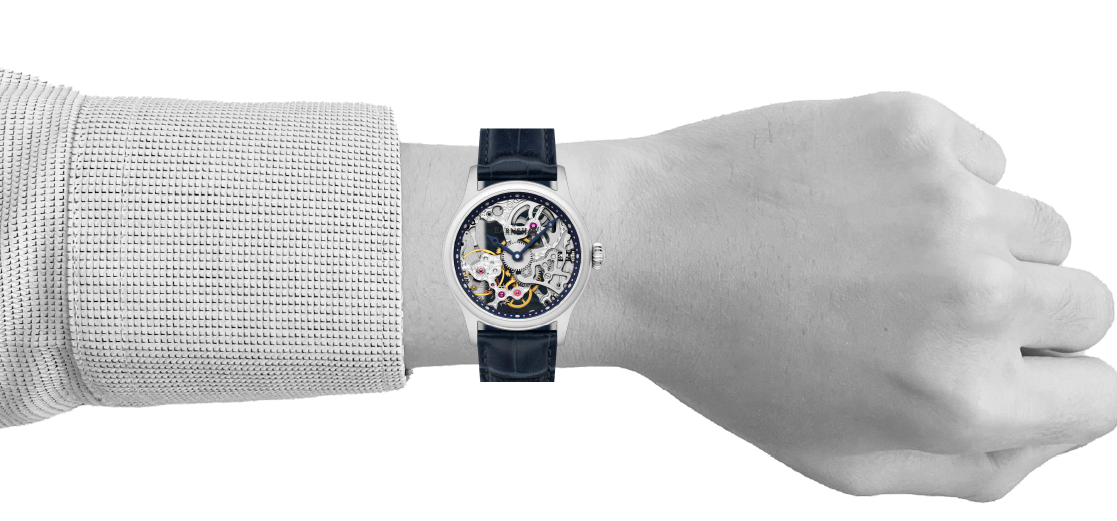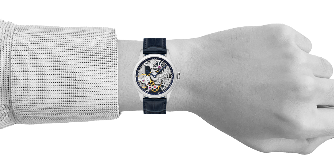Truly a remarkable timepiece. Here the watch simply acts to frame the true essence and star of this timepiece, the hand-winding mechanical movement. With every second this watch is a balletic flow of gears, and springs that act in unison to deliver a truly incredible working piece of wearable art.
