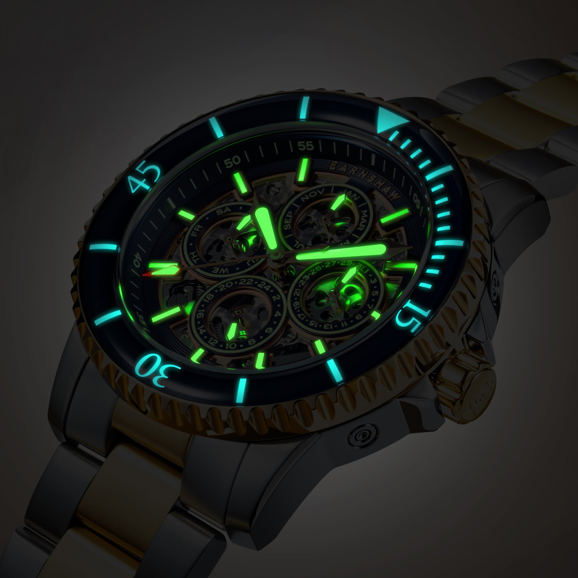 Encased by a luminous bezel and hands, a unidirectional turning bezel, and an exhibition caseback, the Admiral Duncan isn’t just built for timetelling—it’s built for adventure.
