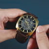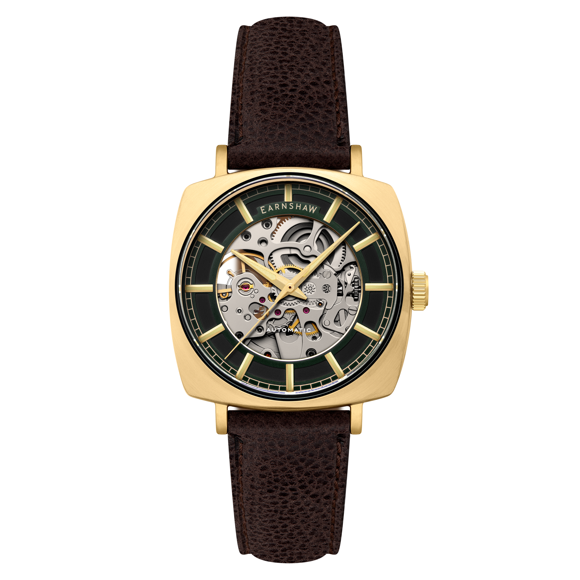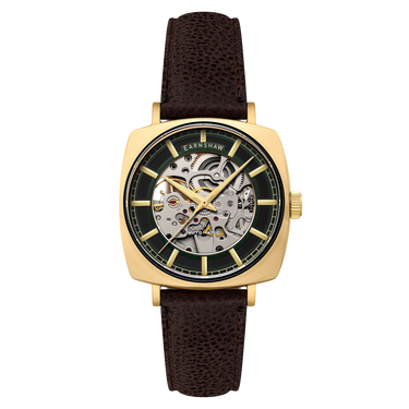 Its polished 40mm square case draws attention with sleek boldness. The skeleton dial reveals the intricate automatic movement within. Paired with an exhibition caseback, the Moorgate invites you to experience the artistry of time.