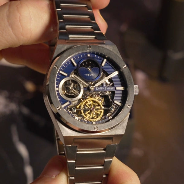 Introducing the new iteration of Drake, the collection that defines style and luxury. This timepiece exudes a clean and sporty look with its geometric case design. Its automatic movement boasts a dual time function, and the skeletonized dial adds both functional details and a touch of elegance. Experience the true expression of Earnshaw legacy with this modern and refined timepiece.