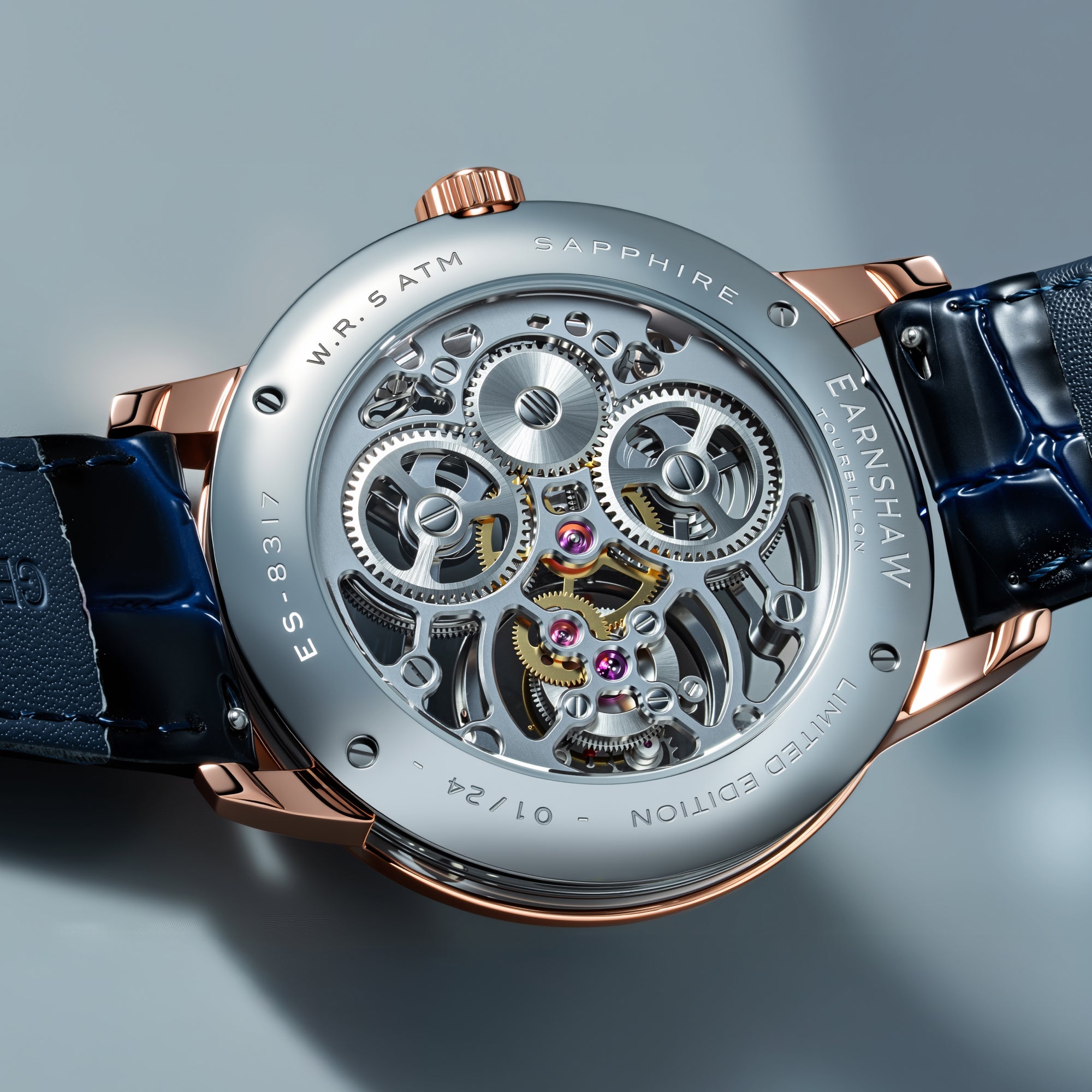 Experience the pinnacle of horological artistry with the Parsons Tourbillon. Crafted with a captivating skeleton dial, a transparent caseback, and glass side panels, the Parsons offers a mesmerising view into the intricate mechanics at its core.