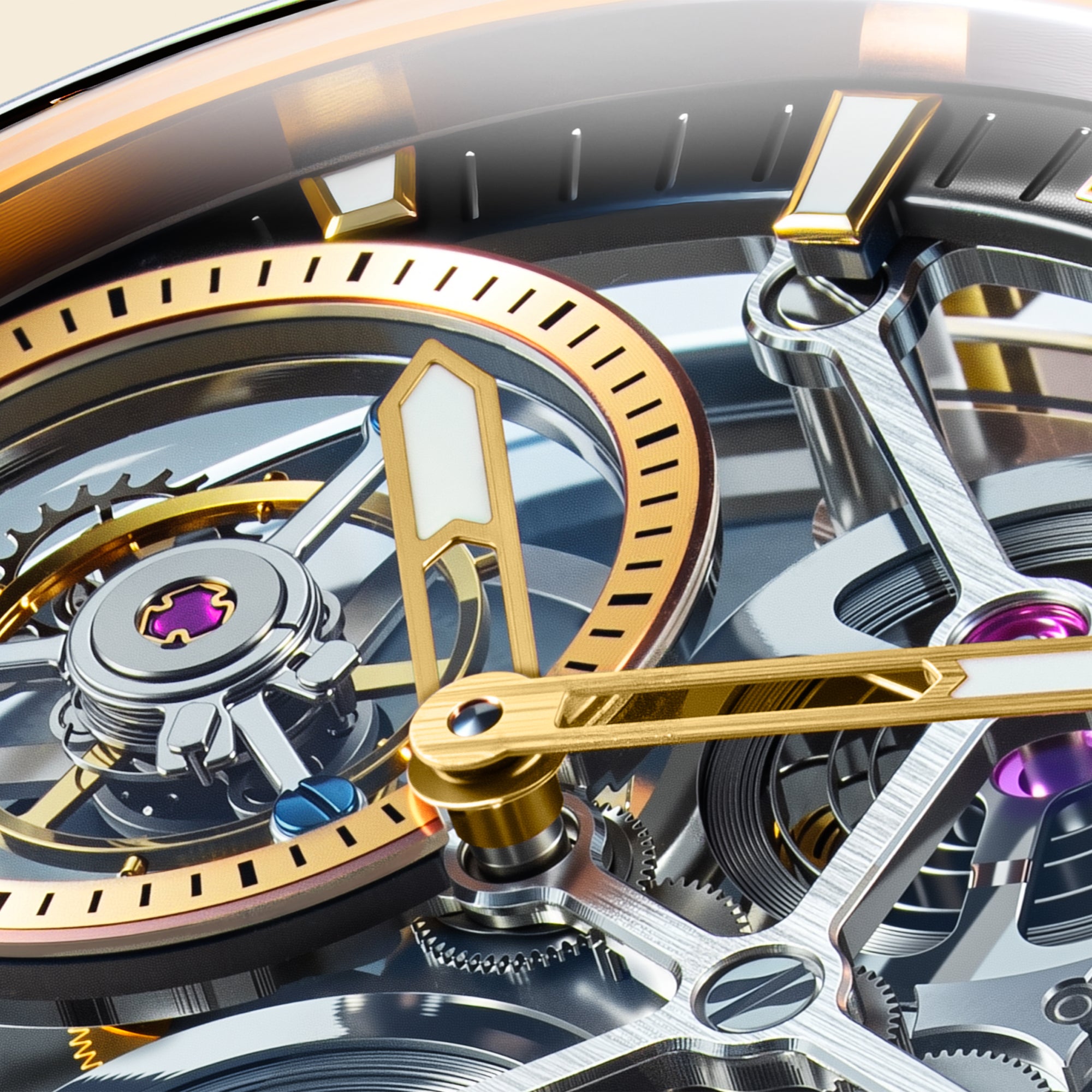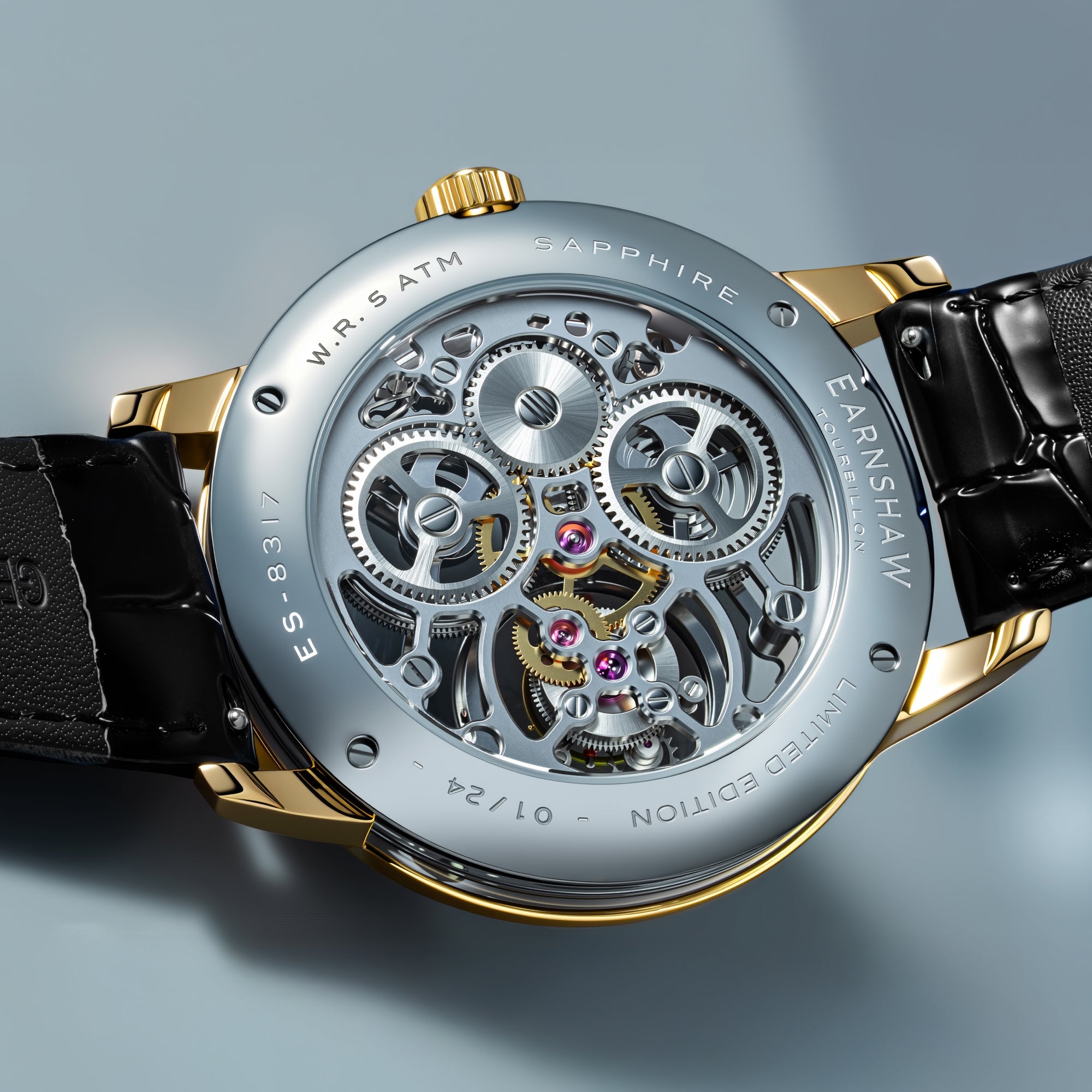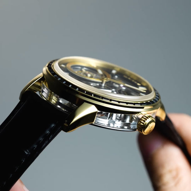 Experience the pinnacle of horological artistry with the Parsons Tourbillon. Crafted with a captivating skeleton dial, a transparent caseback, and glass side panels, the Parsons offers a mesmerising view into the intricate mechanics at its core.