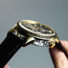 Encased in a 45mm frame, the bezel is gracefully adorned with 45 meticulously set gemstone accents, each one a radiant tribute to true craftsmanship.