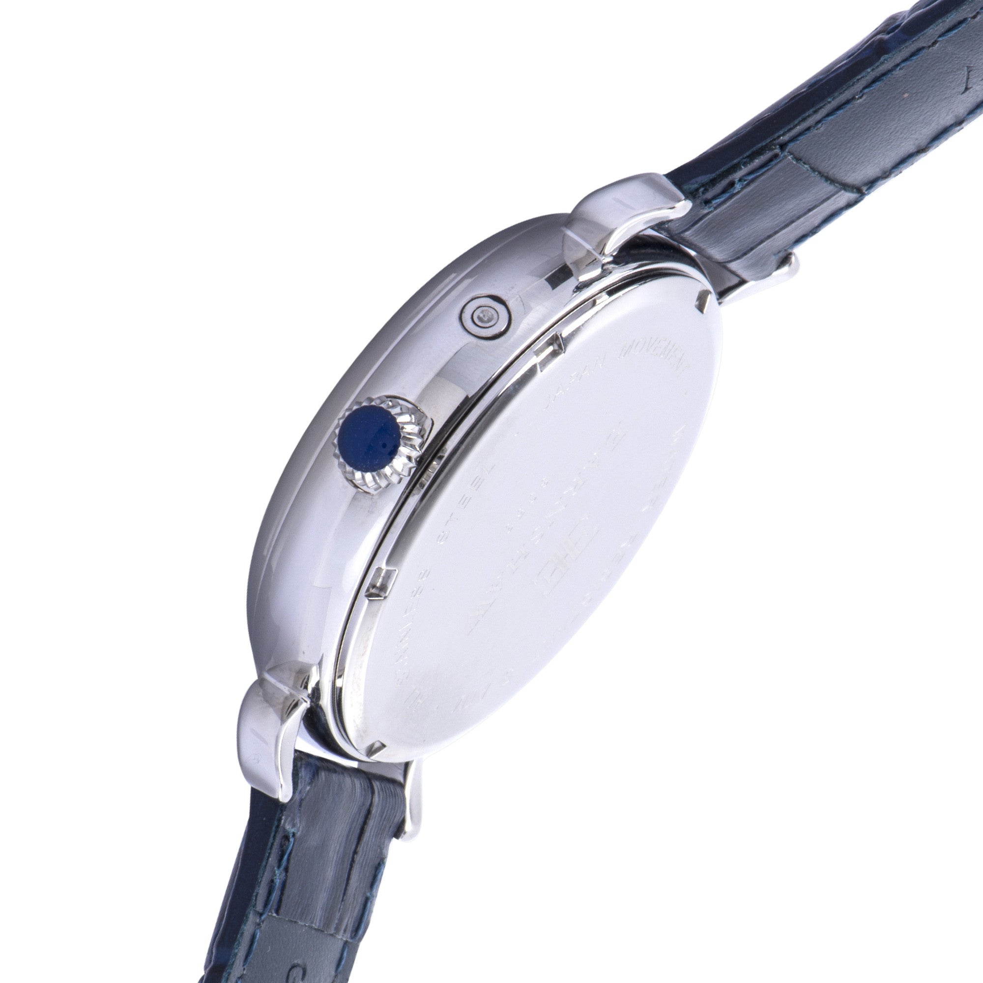 True to understated style, the Grand Calendar features an elegantly shaped, 41mm stainless steel case with flared lugs. Powered by a Miyota multifunction movement, this timepiece shows time, day, month and moonphase via a disc based display.