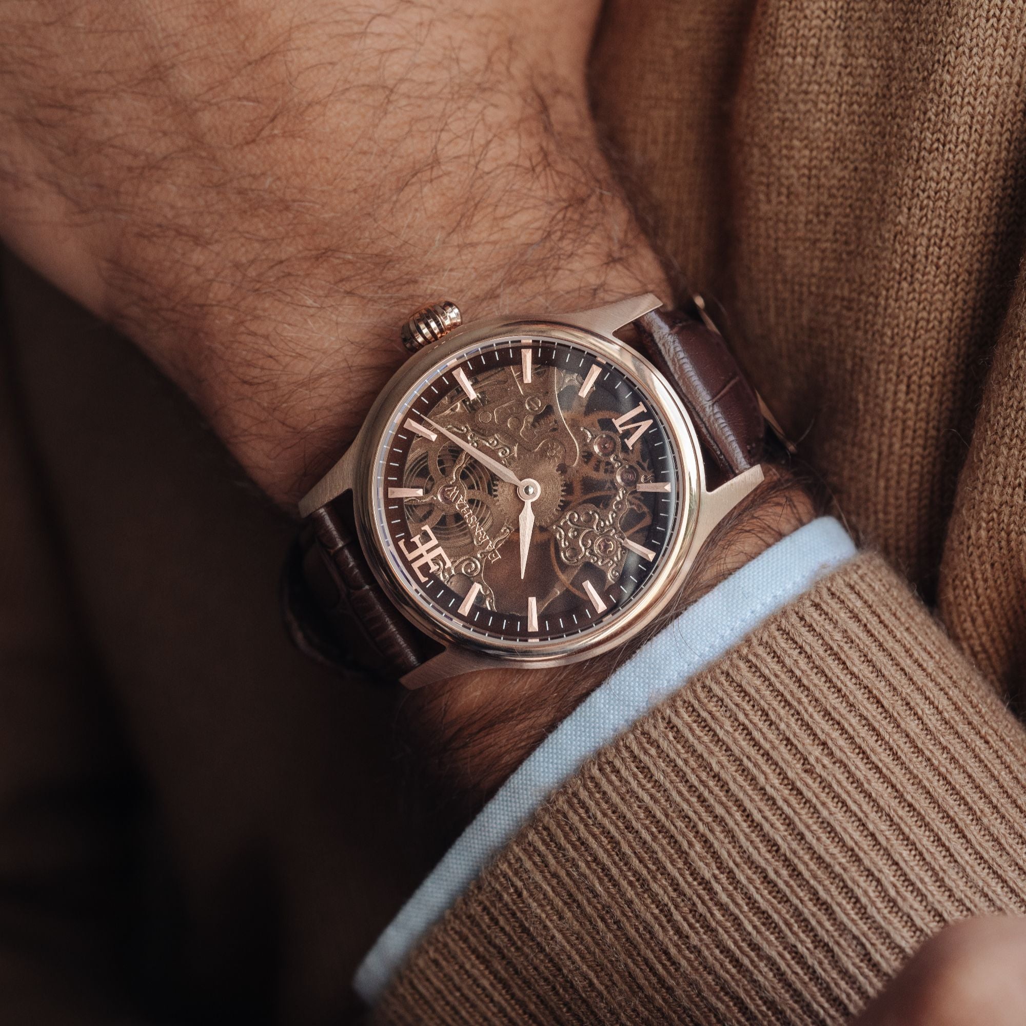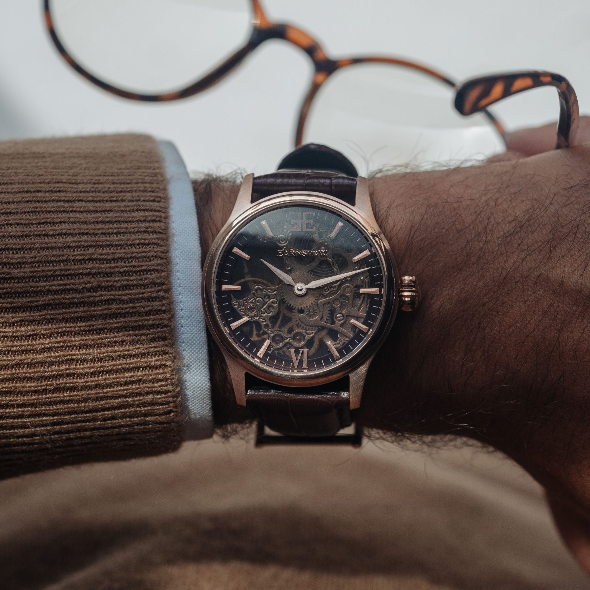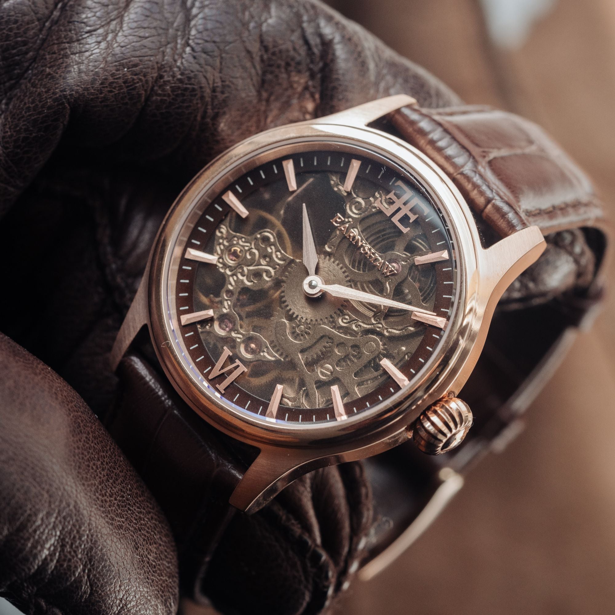 Utilizing an opaque smoky lens – the Bauer Shadow skeleton creates a subtle, sophisticated wristwatch that is still steeped in the core art of mechanical timekeeping.