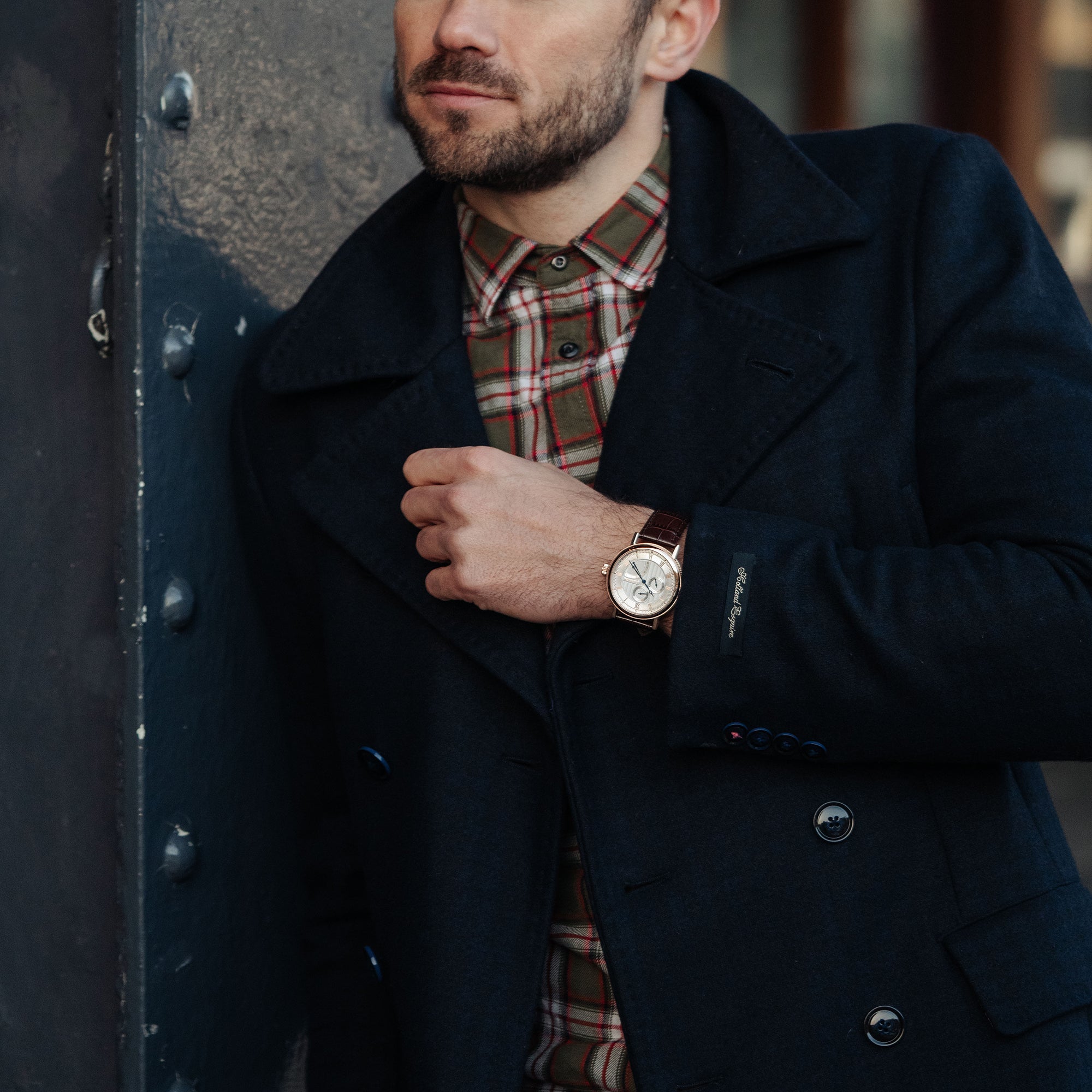 The Beaufort is a striking embodiment of refined elegance and masterful craftsmanship, designed for those who appreciate timeless sophistication. Housed in a polished 43mm case, this timepiece is powered by a precise Japan Quartz movement and features multifunction displays with a retrograde complication—offering both visual intrigue and practical utility. The classic Roman numeral indices, blued hands, and textured dial evoke a vintage charm, it is a distinguished accessory for the modern gentleman.