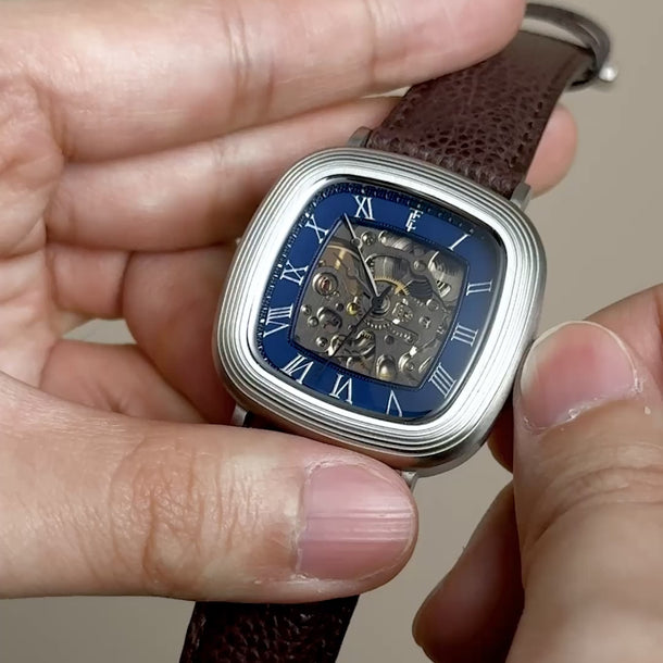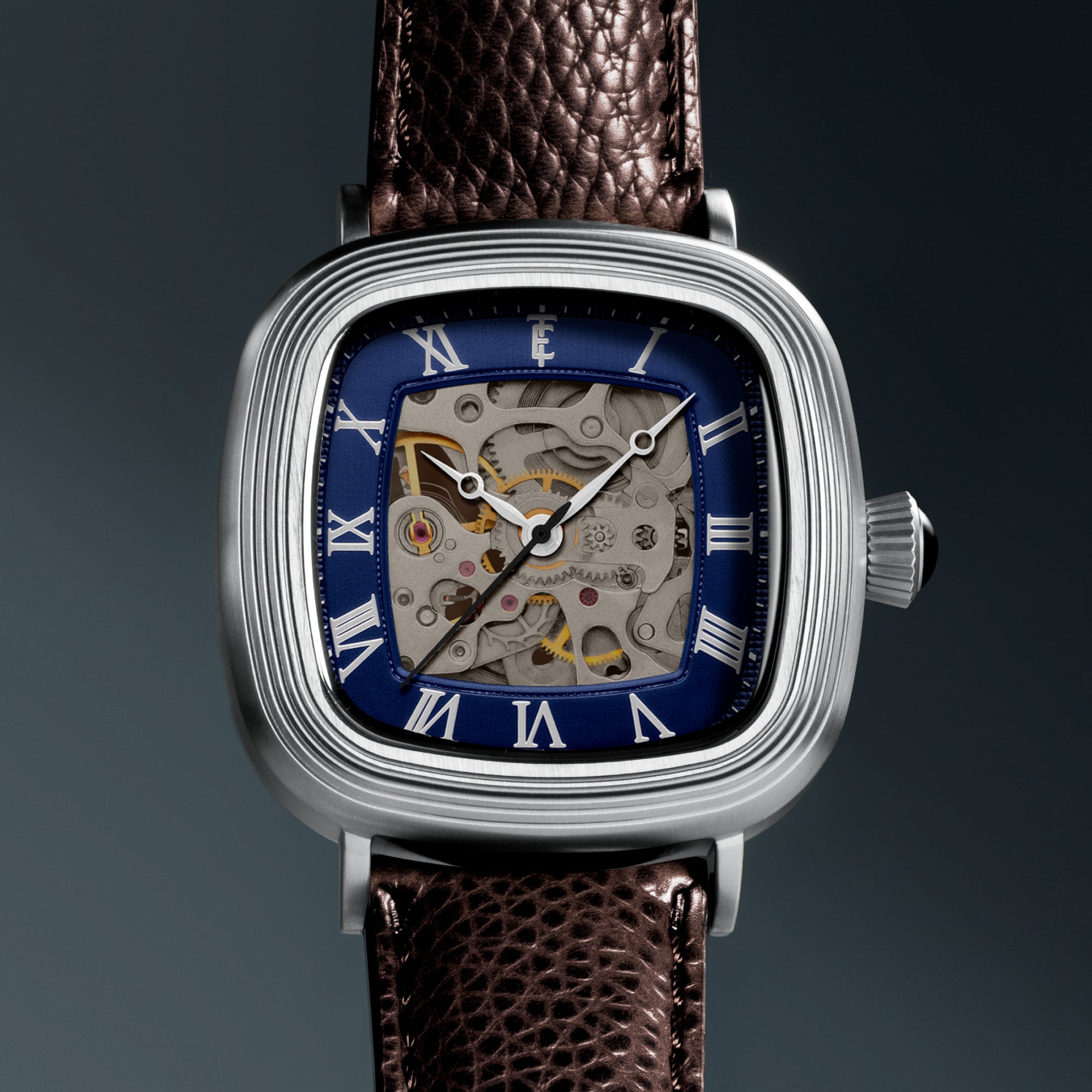 With its compact 38mm square case, the Chester is designed for balance. The timepiece also reveals its mechanical heartbeat with its skeleton dial and see-through exhibition caseback. Effortlessly refined for both everyday wear and formal elegance, the Chester brings sophistication and character together in one clean, square form.