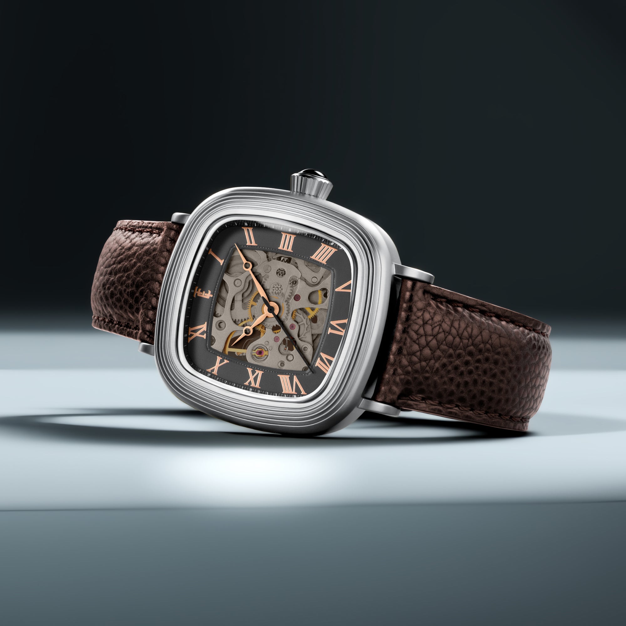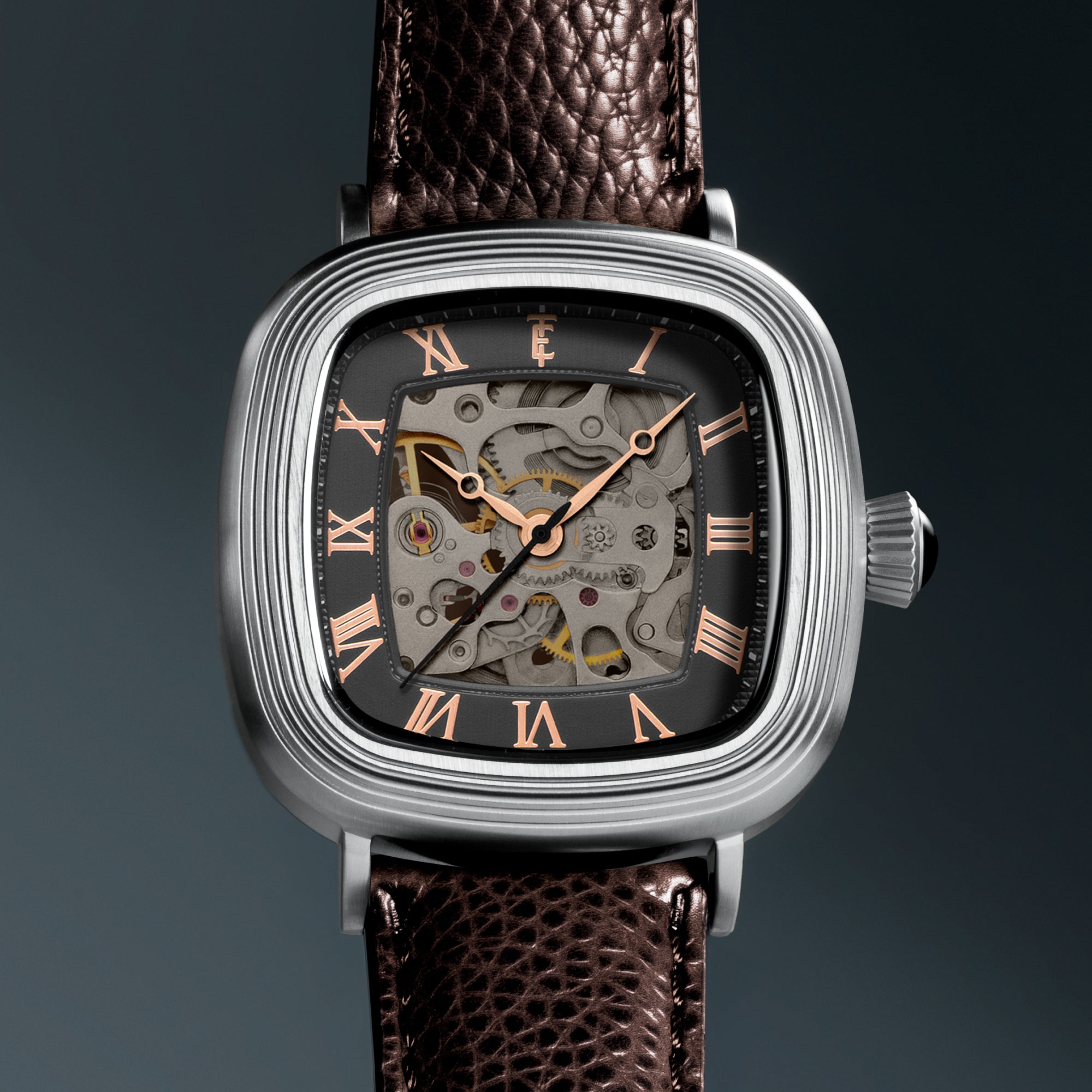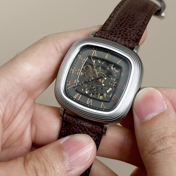 With its compact 38mm square case, the Chester is designed for balance. The timepiece also reveals its mechanical heartbeat with its skeleton dial and see-through exhibition caseback. Effortlessly refined for both everyday wear and formal elegance, the Chester brings sophistication and character together in one clean, square form.