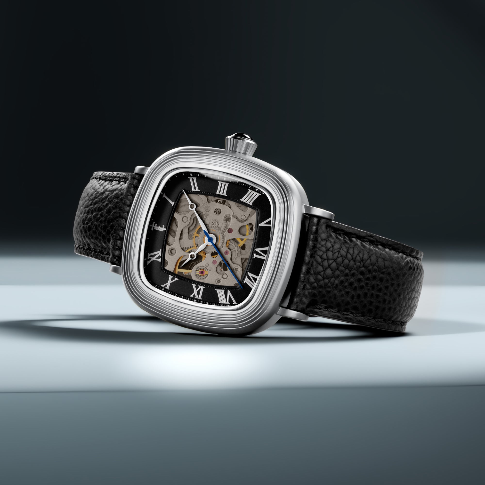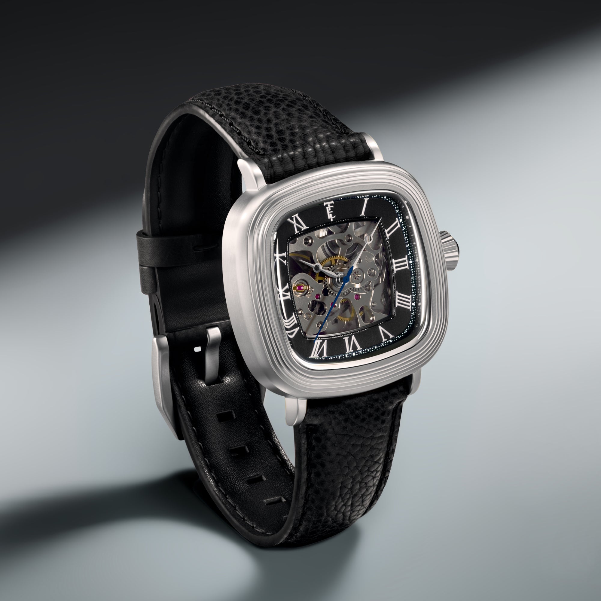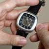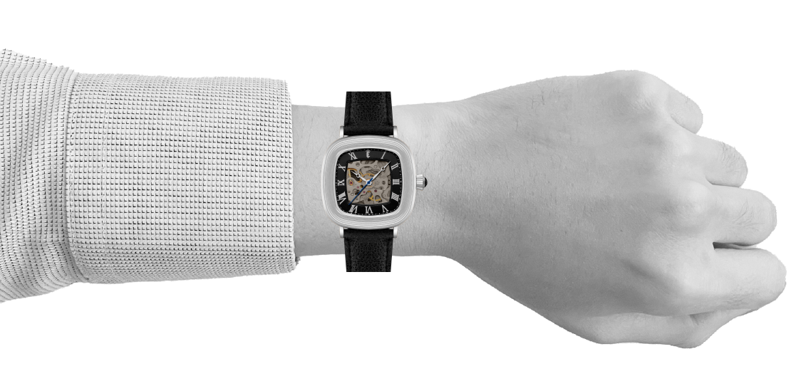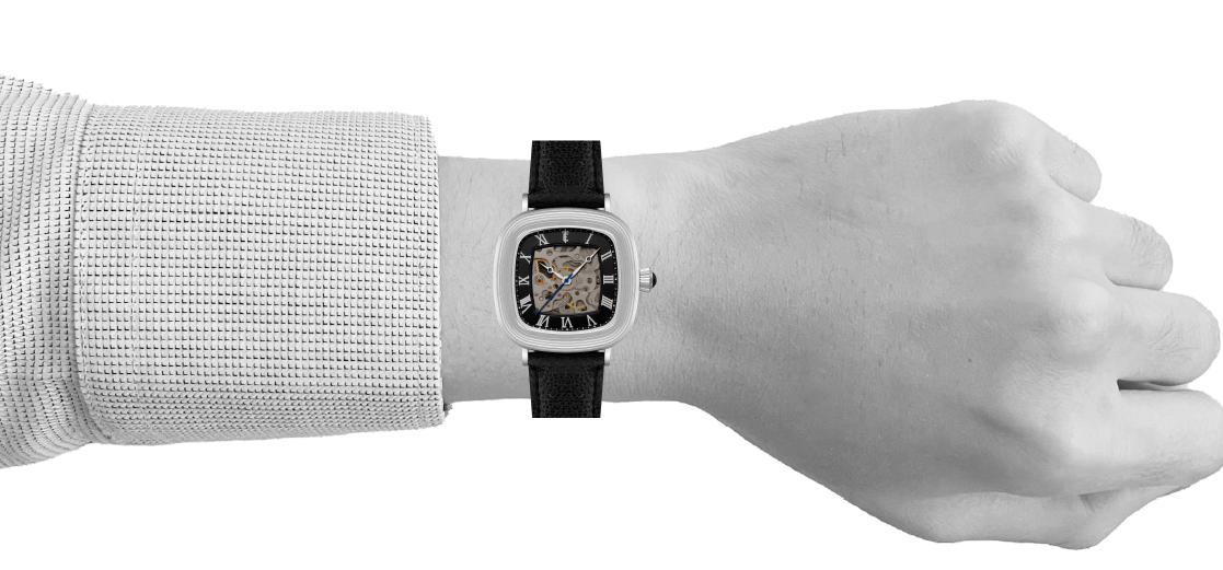 With its compact 38mm square case, the Chester is designed for balance. The timepiece also reveals its mechanical heartbeat with its skeleton dial and see-through exhibition caseback. Effortlessly refined for both everyday wear and formal elegance, the Chester brings sophistication and character together in one clean, square form.