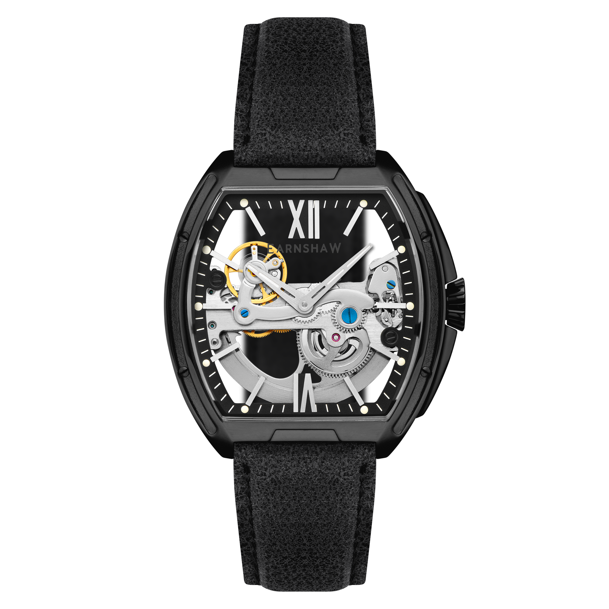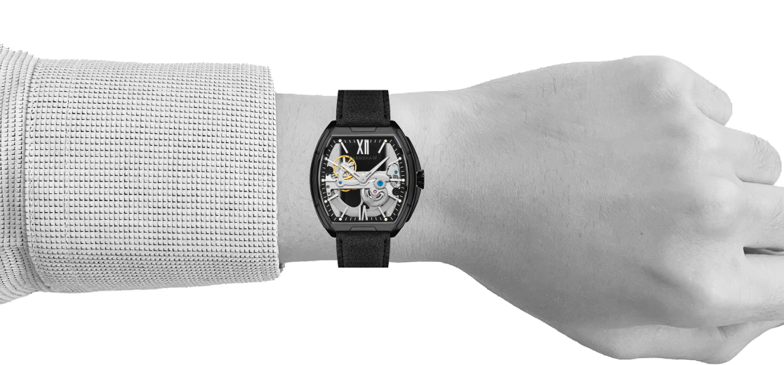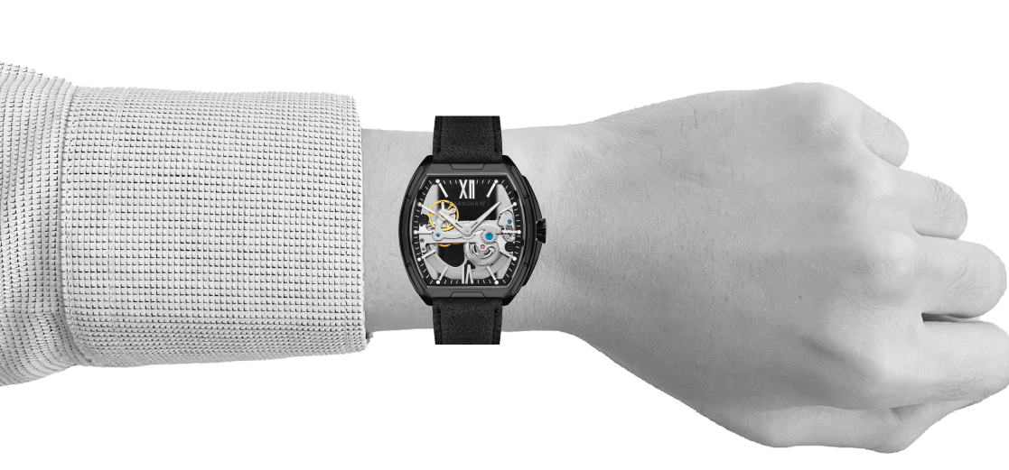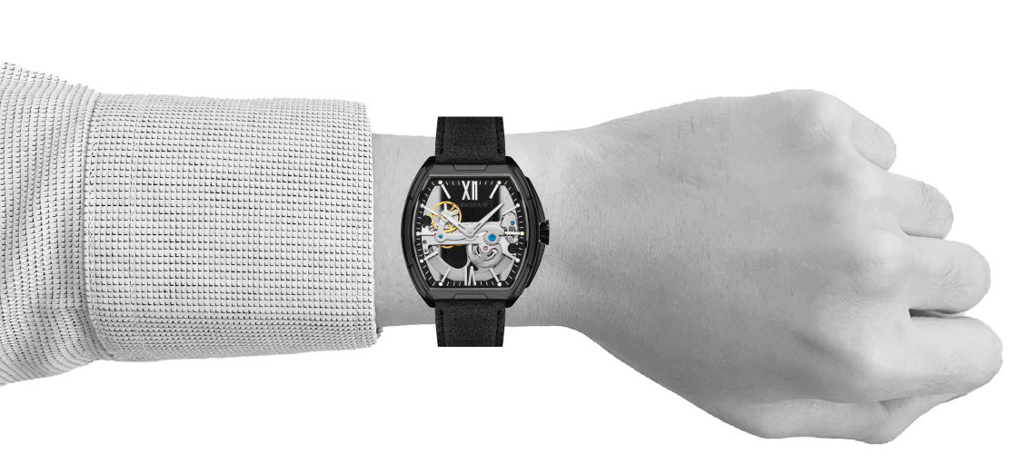 Sleek and striking, the Knightsbridge Automatic embraces openwork design with a fully transparent dial and exposed movement. Housed in a 45mm barrel-shaped case, this spectacular timepiece features Roman numeral accents and a double-curved lens. Pairing traditional elegance with contemporary flair, it redefines classic watchmaking.